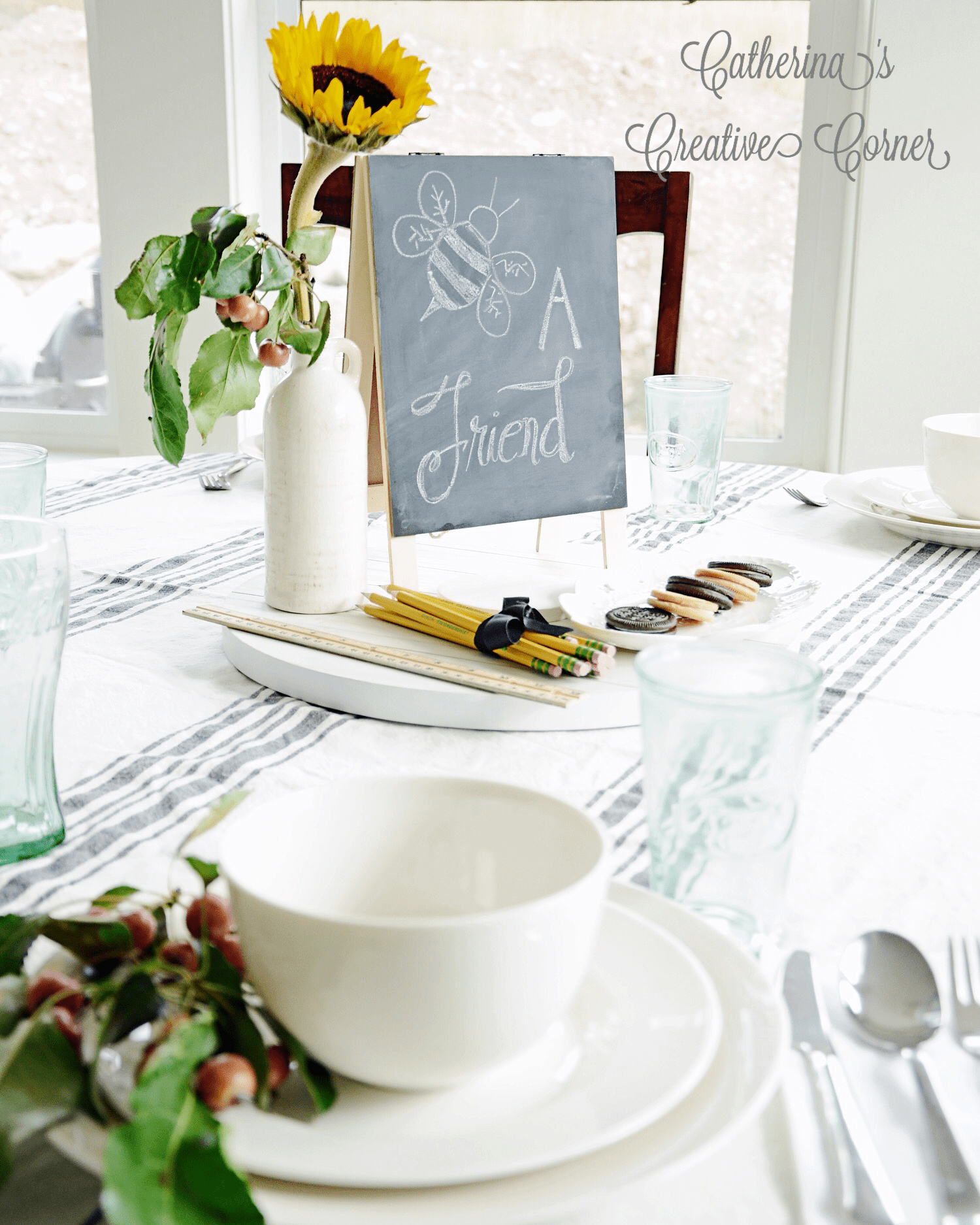 Simple table setting for our back to school feast. I found these beautiful crabapple branches while out walking with the kids..and I’m really in love. I might have lots of pics of them because I like them that much..