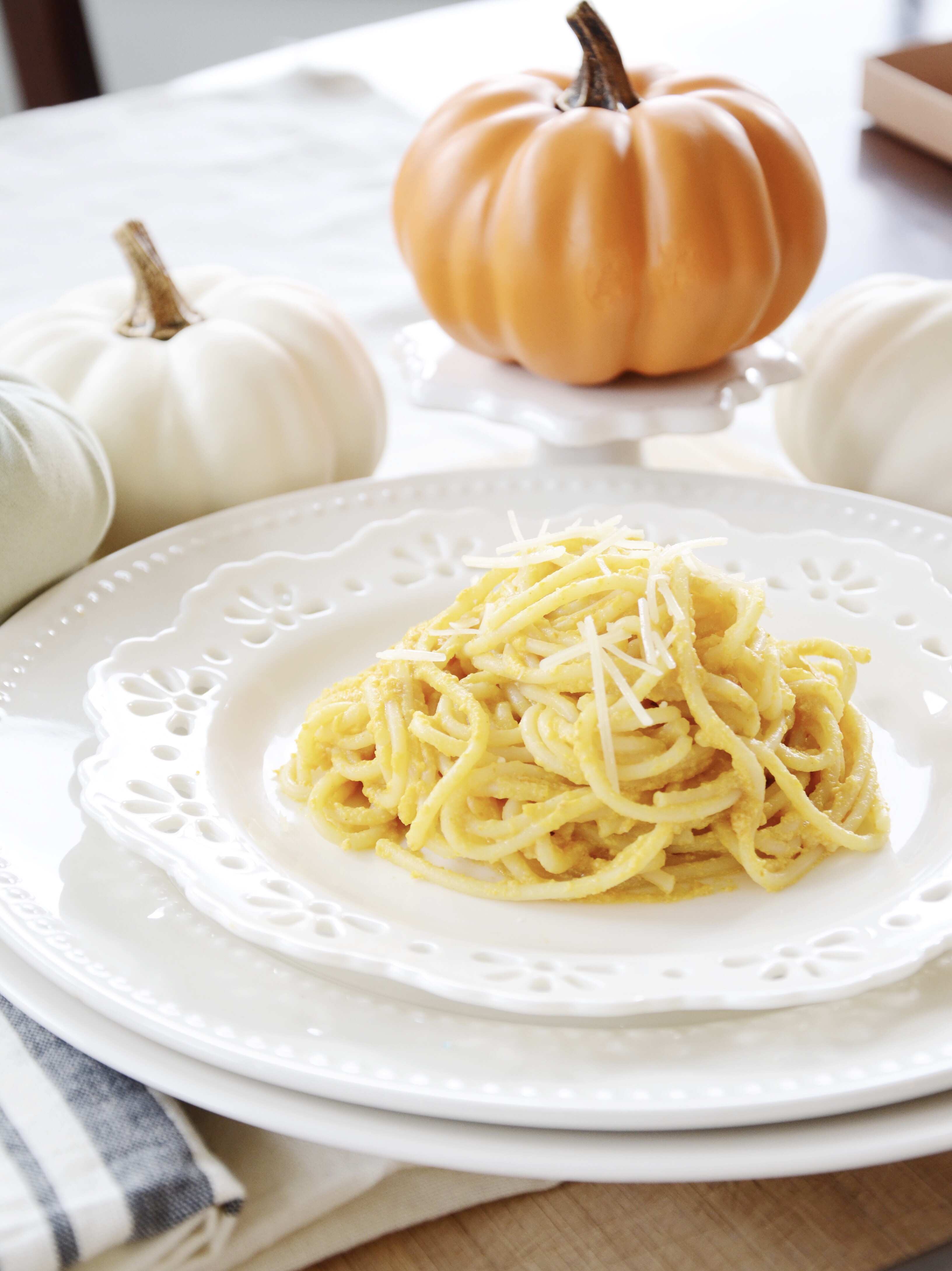 Today was a busy day for my family. My sweet 10 year old had surgery on her broken arm, so we spent pretty much the whole day at a local surgical center. She got to come home afterwards so that was so good! (Surgery by the way went GREAT)….Besides that we had to run our other 3 kids to and from school and make arrangements for sitters while we where tending to our girl. Well…by the end of the day we were all famished and so a quick and easy meal was a must…so I had this fun Fall recipe I’ve never tried and let me tell you …it was delicious…and easy! #pumpkinalfredo . Everyone loved it! It had the creaminess of Alfredo, but the pumpkin wasn’t overpowering at all. A hint of garlic, nutmeg and the yummy flavor of Parmesan….sooooo good y’all! And it really was perfect to welcome this beautiful Fall season with! I found this off of yellowblissroad …go check out the many yummy recipes Kristen has.