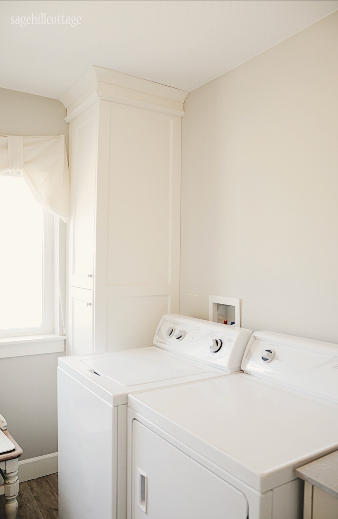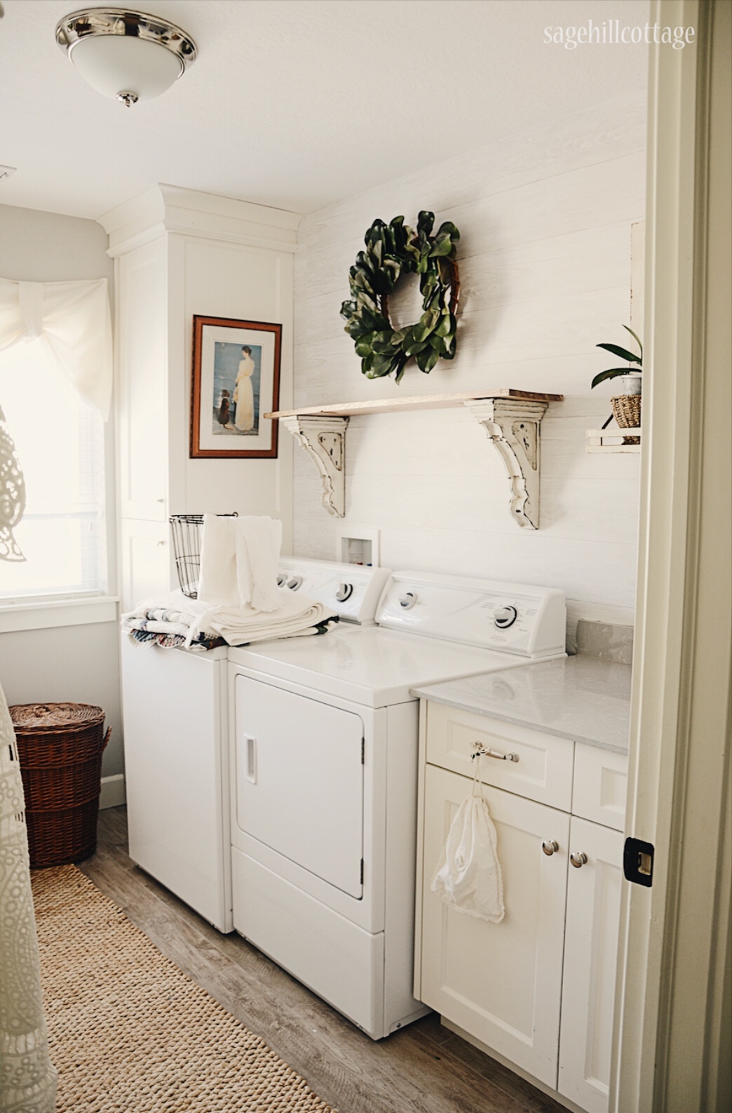 Really this laundry room was all about making a cozy pretty functional space for us to get the laundry done! That’s it! Super simple to do.