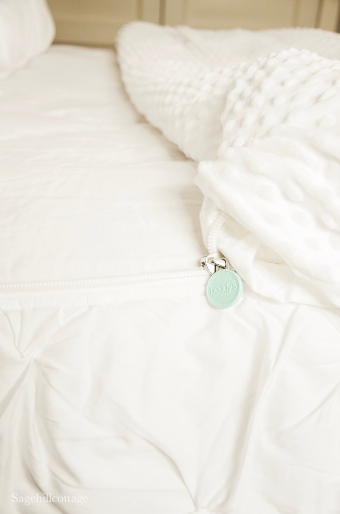 Basically what makes this bedding so unique is its zipper design. It is made to all fit in ONE piece onto your mattress. No messing with fitted sheets, flat sheets or quilts. Within a few minutes you can make a “from scratch” bed. And the best thing is that once you have the Beddys “installed” it takes only SECONDS to make…even your littlest of kids can do it. Because…who can’t zip up a zipper?! Let them jump on their bed or play too…it all stays IN PLACE. And with this soft Minky interior makes it cozy and warm as well.