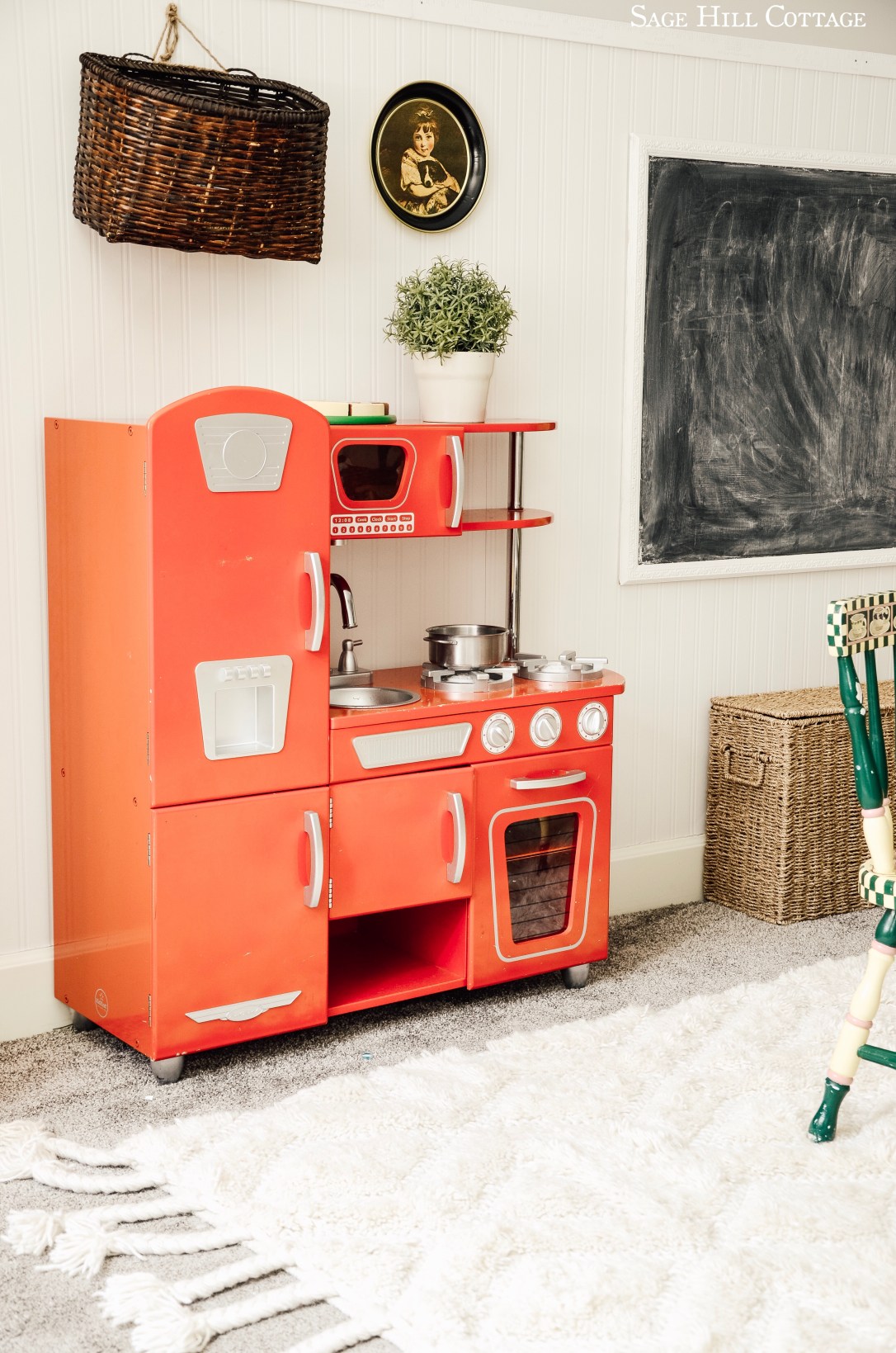 Next on the list for this little playroom will be to add some playfood to that basket on the wall so my tiny ones can play SuperMarket! What’s your favorite toy food? Kid kraft? Ikea? Melissa & Doug?