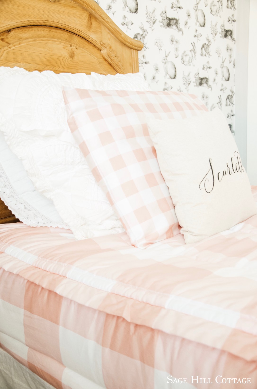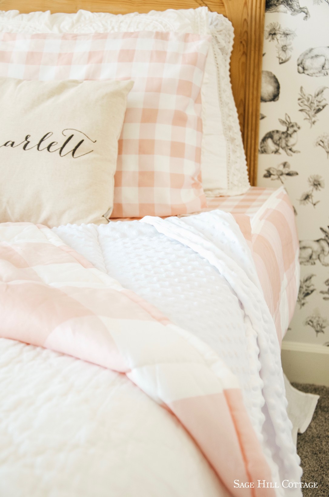 Beddys just released this brand new design for their Summer 2019 line, and when I saw it I knew it had just the right amount of color that I wanted for this space. So many of their styles are very design friendly/ transitional to fit any persons style. This Pink Sugar design, covered in hues of pink and white plaid was a match made in heaven! Not only is is Cottage chic AND fun but it also has their patented zipper bedding feature that Beddys is known for. Anyone who can zip a zipper can make their bed in a ZIP! And that’s including my 3 year old. The fact that the pink is the color I wanted to highlight in the neutral space made this choice a no brainer for me. I choose pink, and that is what I stuck to!