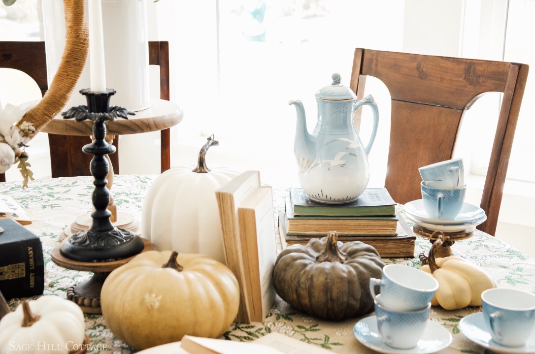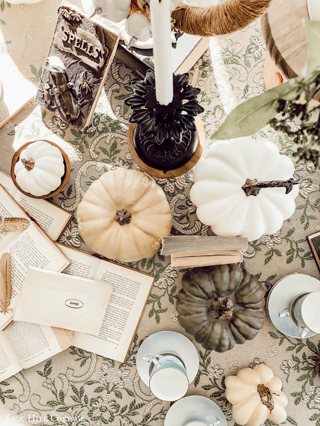 Welcome, welcome! With Halloween approaching and all the fall loveliness in the air I thought it would be fun to challenge myself in creating something FUN, WHIMSICAL & well CHEAP. And by cheap I really mean free🤣. Seriously, who wants to spend loads of money on decor that will only be up for few weeks…especially with Christmas coming up we want to save all those pennies towards, well- Christmas…. Am I right? Sure, I try to buy one new Halloween piece every season but this year my goal was to use what I already had. So I came up with this table setting fit for the finest of Witches, because you never know when they will pop in for spot of tea. And I wanted to share this with you all to show that you can create this look too!