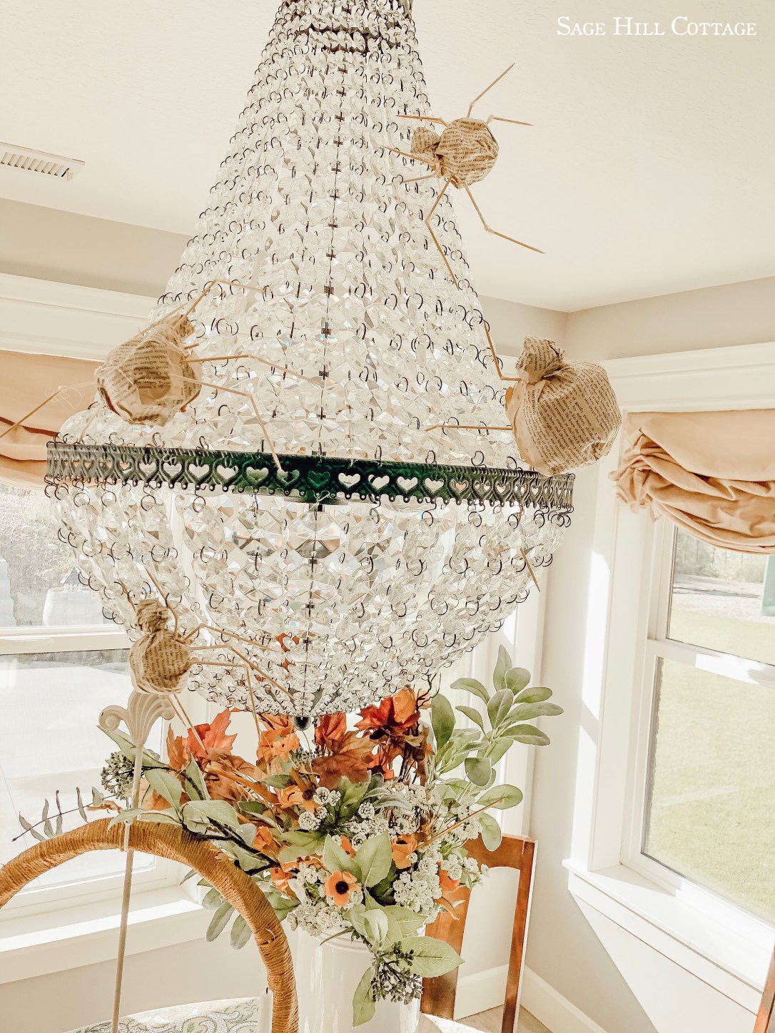 As well as my DIY Book Page Spiders that I did last year. They where so easy to just stick to the Crystal Chandelier, and added just the right amount of creepy elegance.