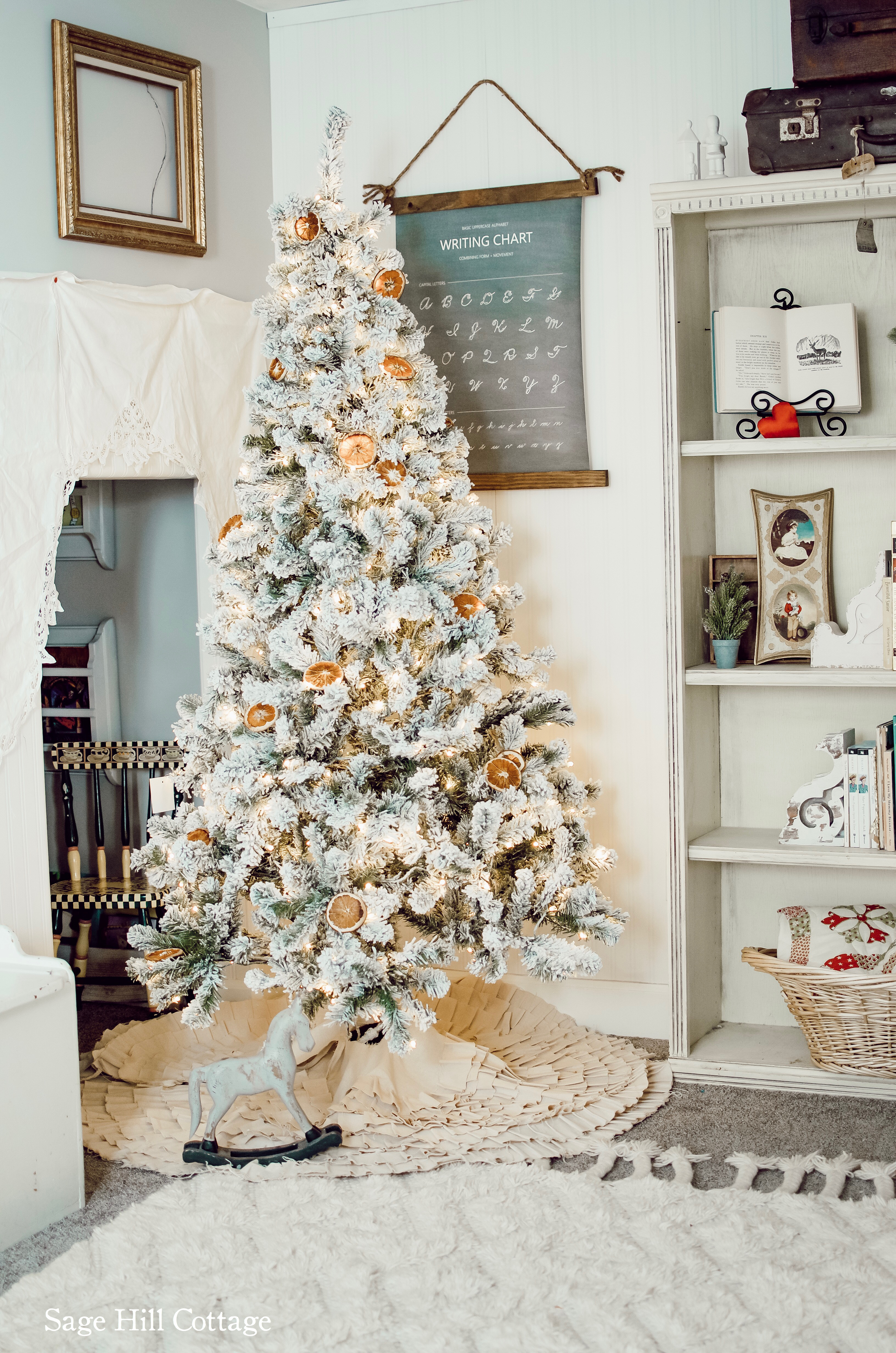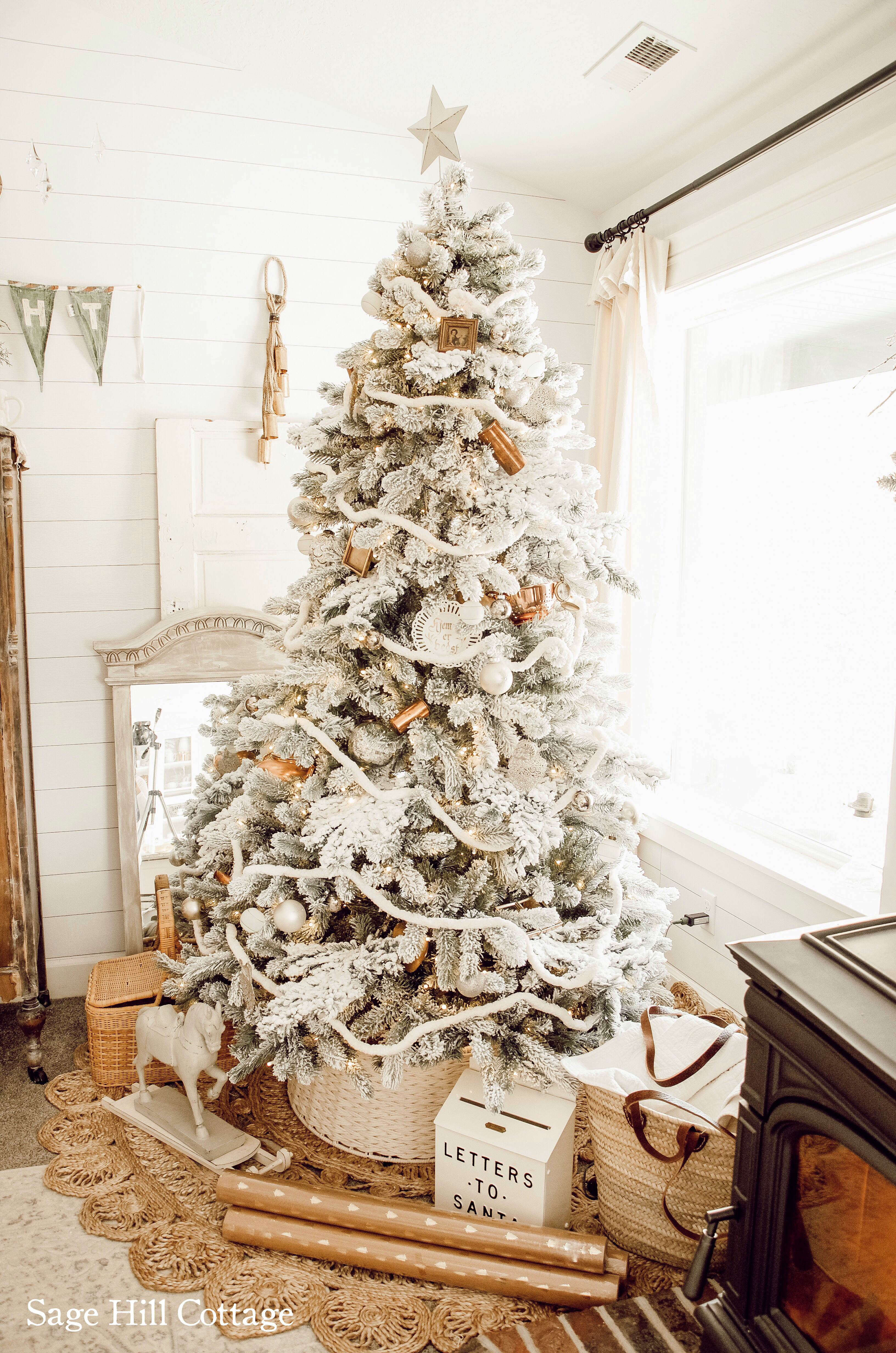 So I decided that their Prince Flocked 6′ tree is PERFECT for this space!