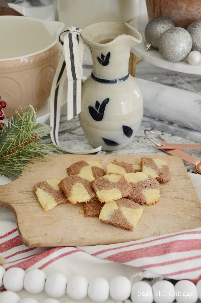 These cookies are some that my Danish Grandmother always used to make for Christmas when I was a little girl… they were some of my favorites….they are so good! They taste like a yummy vanilla butter cookie with a hint of cocoa. I’m sure you can up the cocoa in this one if you want a stronger chocolate flavor.